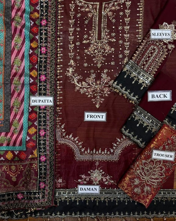Chiffon plain back with heavy embroidered spangle work back daman border