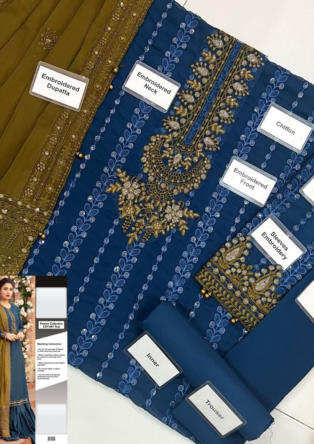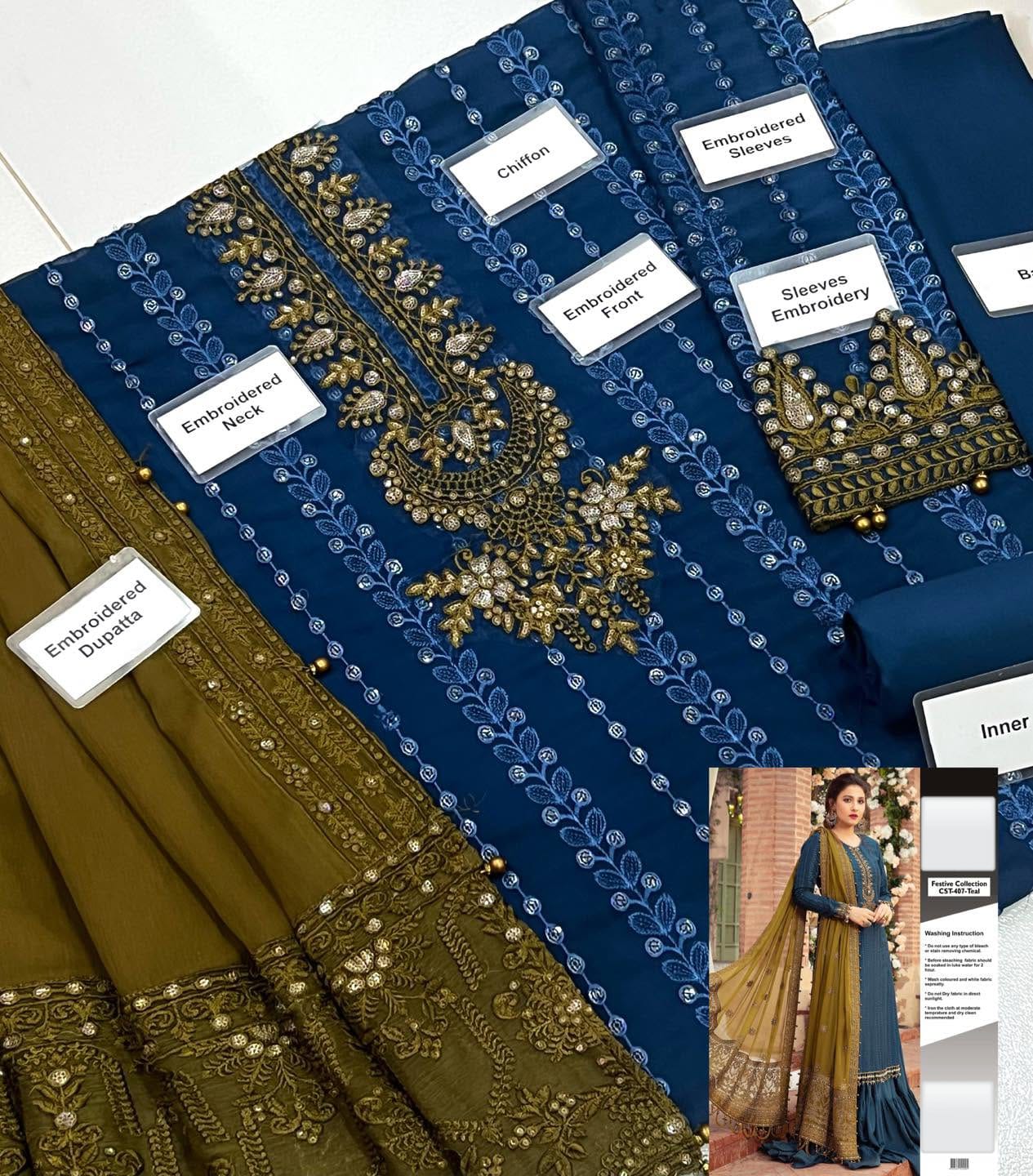 •Chiffon Heavy Embroidered Dupatta With Hanging Tussels