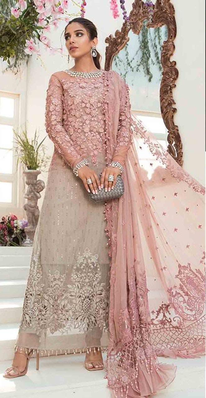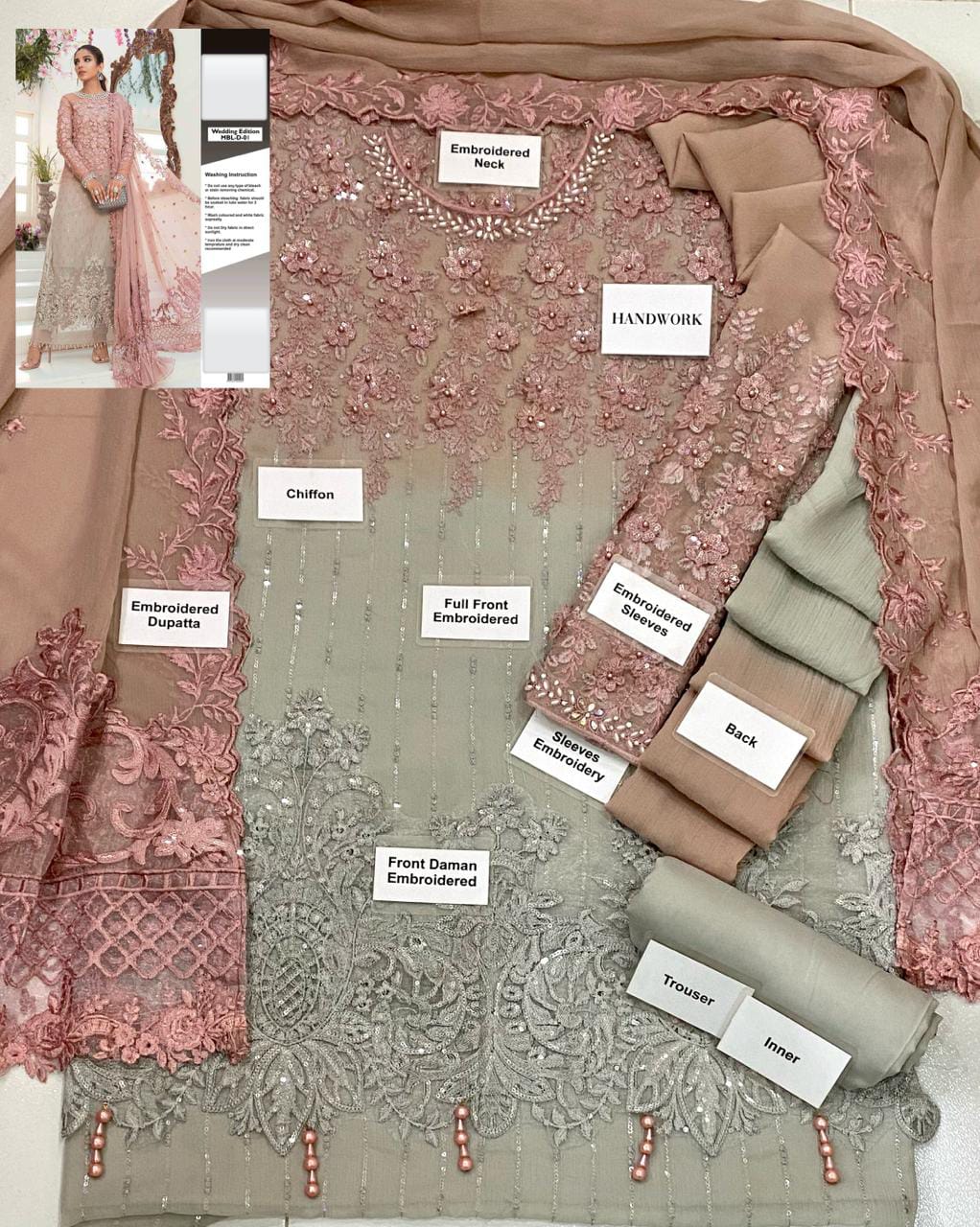 •Embriodered Chiffon Sleeves With 3D Handwork
