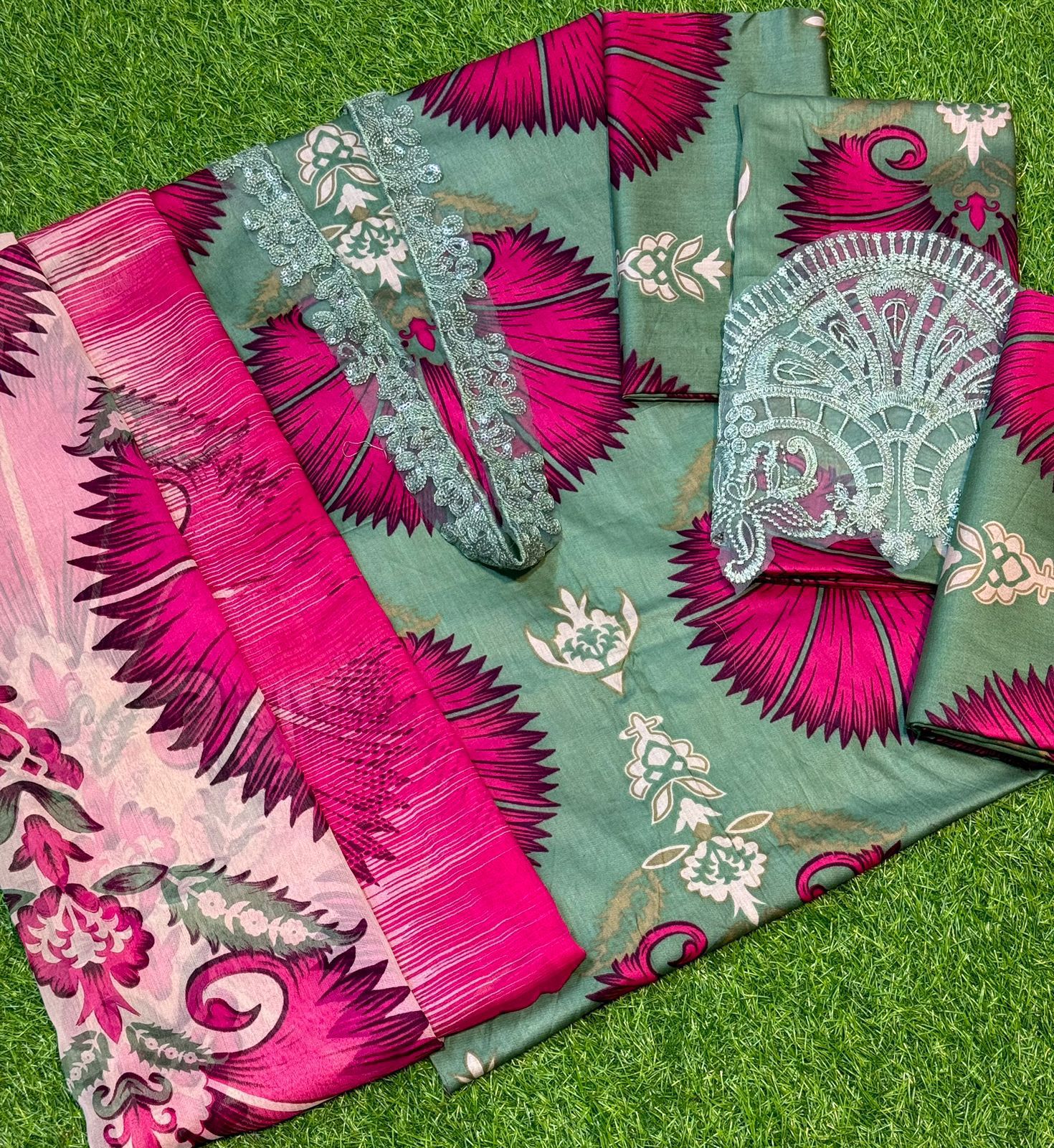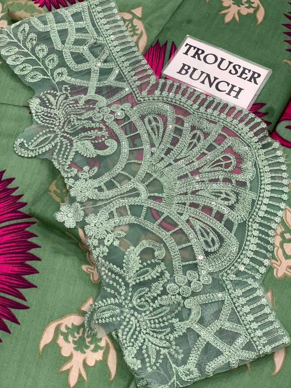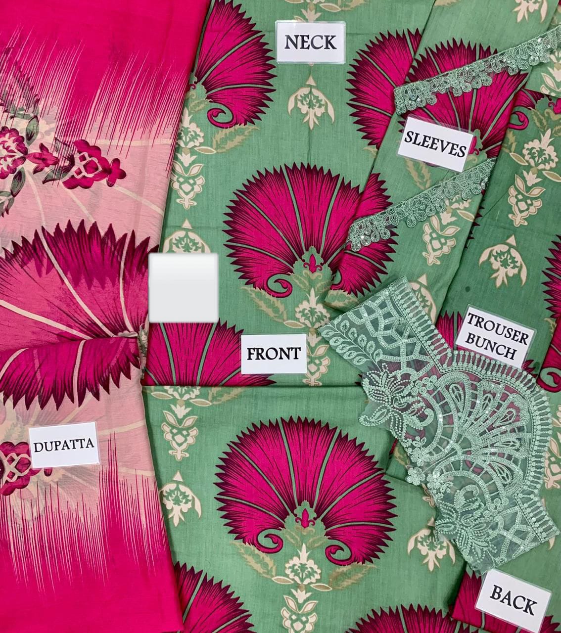 Printed lawn sleeves with heavy embroidered sleeves bunches