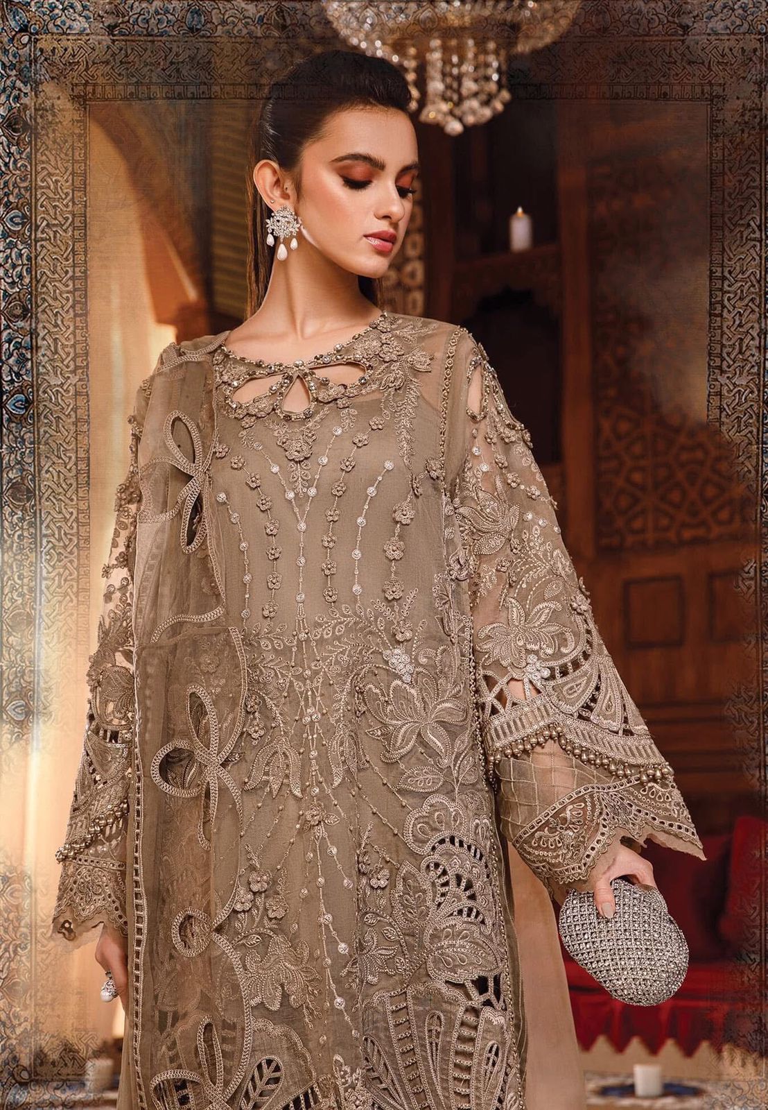 Fully Heavy Embroidered Organza Front with Hand Work and 3D flower Work