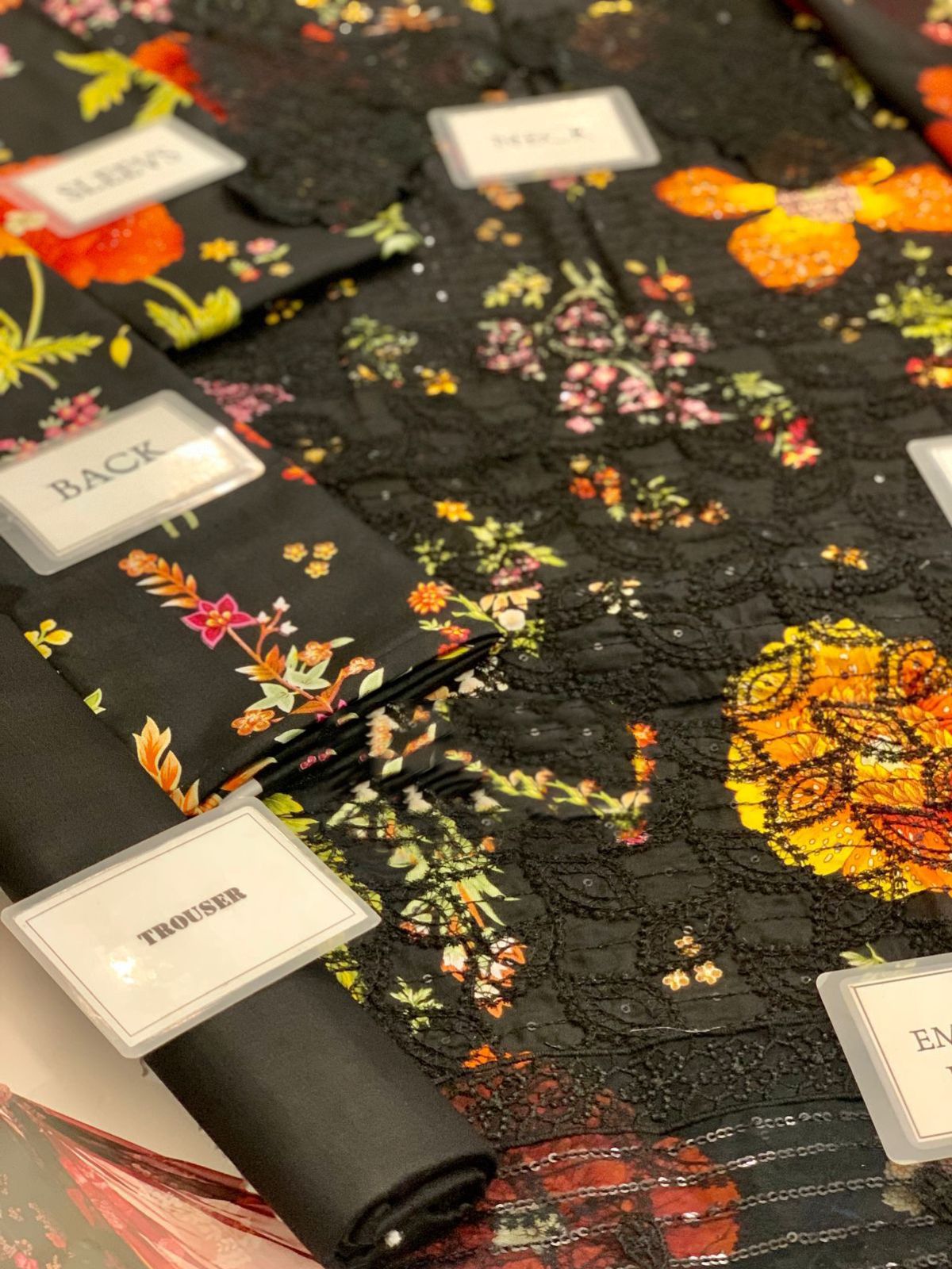 printed lawn front with fully heavy embroidered spengle work front with heavy embroidered spengle work daman boarder with heavy embroidered spengle work neckline