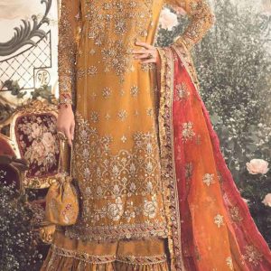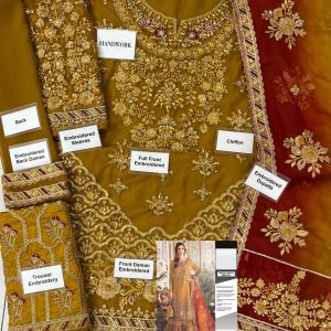 chiffon fully heavy embroidered spengle work centre panel front with hand emblishment work with 2 type heavy embroidered spengle work daman boarder with heavy fancy tulses attachment with plain side panel with heavy embroidered spengle work side panel bunches