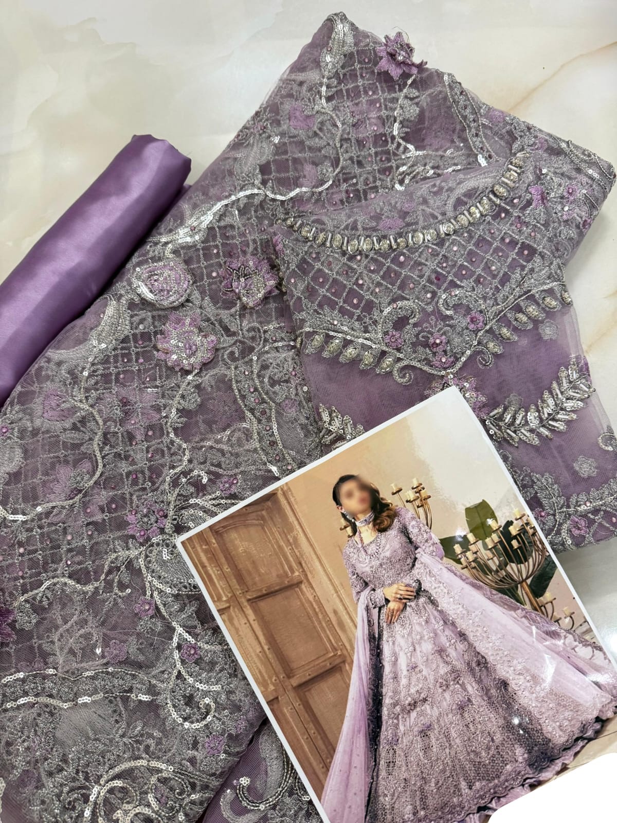 *Detailing*: thread , tila & sequence embwork + stone on it.