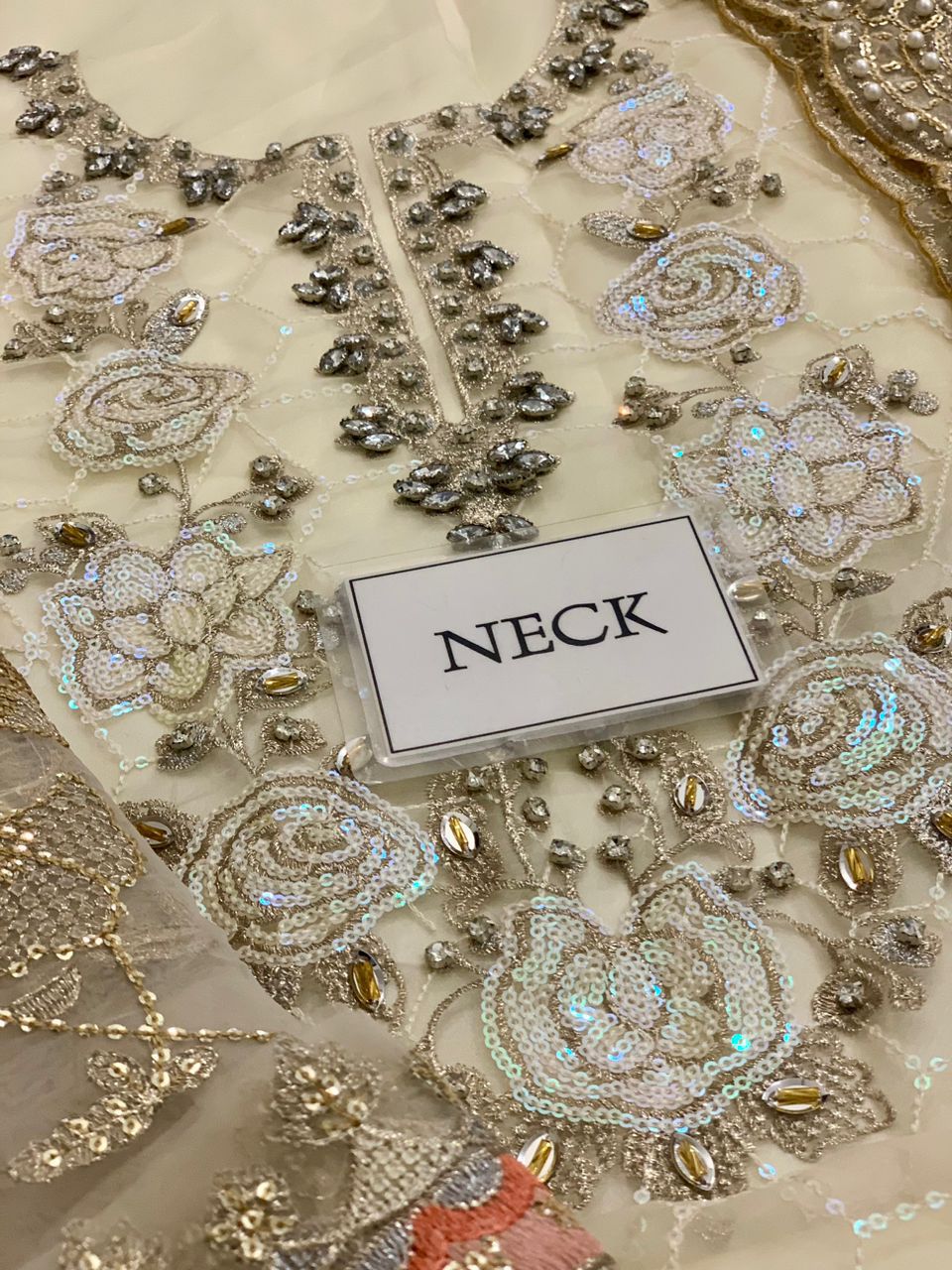 *organze fully heavy embroidered spengle work centre panel with fully hand emblishment adha work with heavy embroidered spengle work neckline with hand emblishmnet adha work with heavy embroidered spengle work daman boarder with hand emblishment adha work with fancy tulses attach with heavy embroidered left & right embroidered spengle work panel attach*