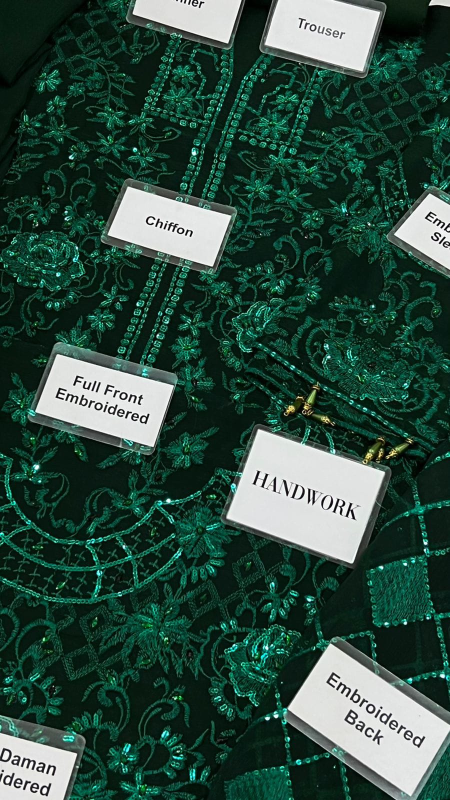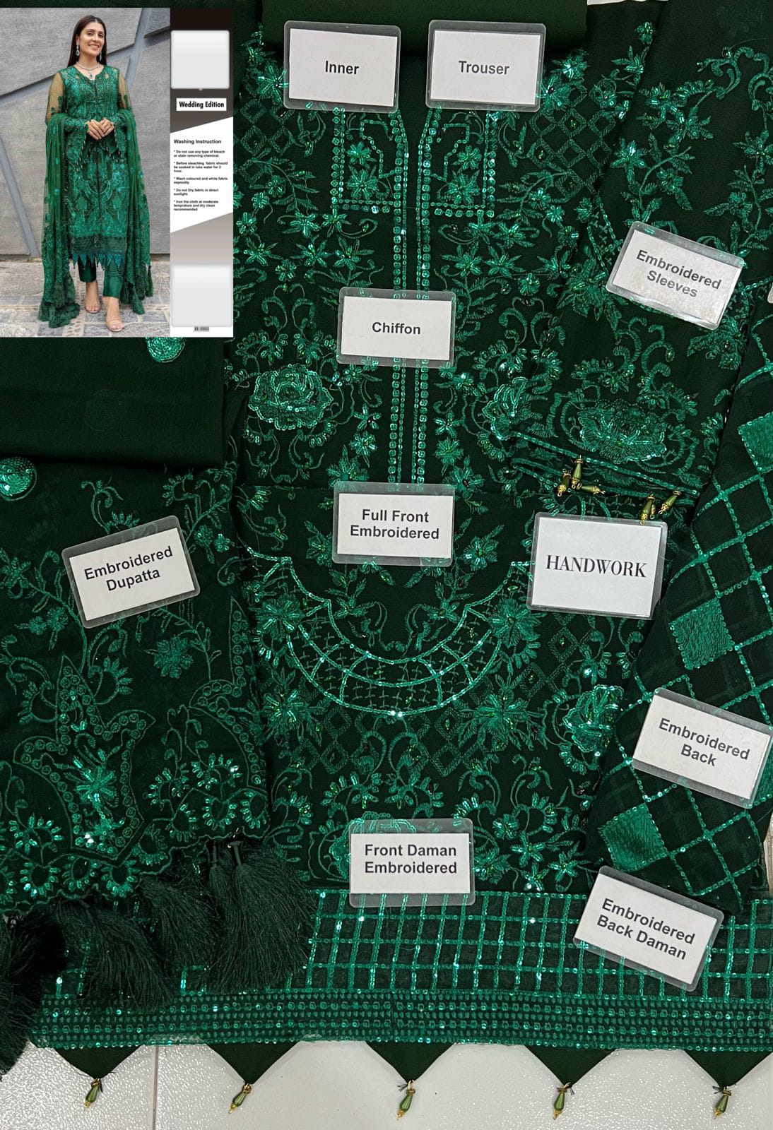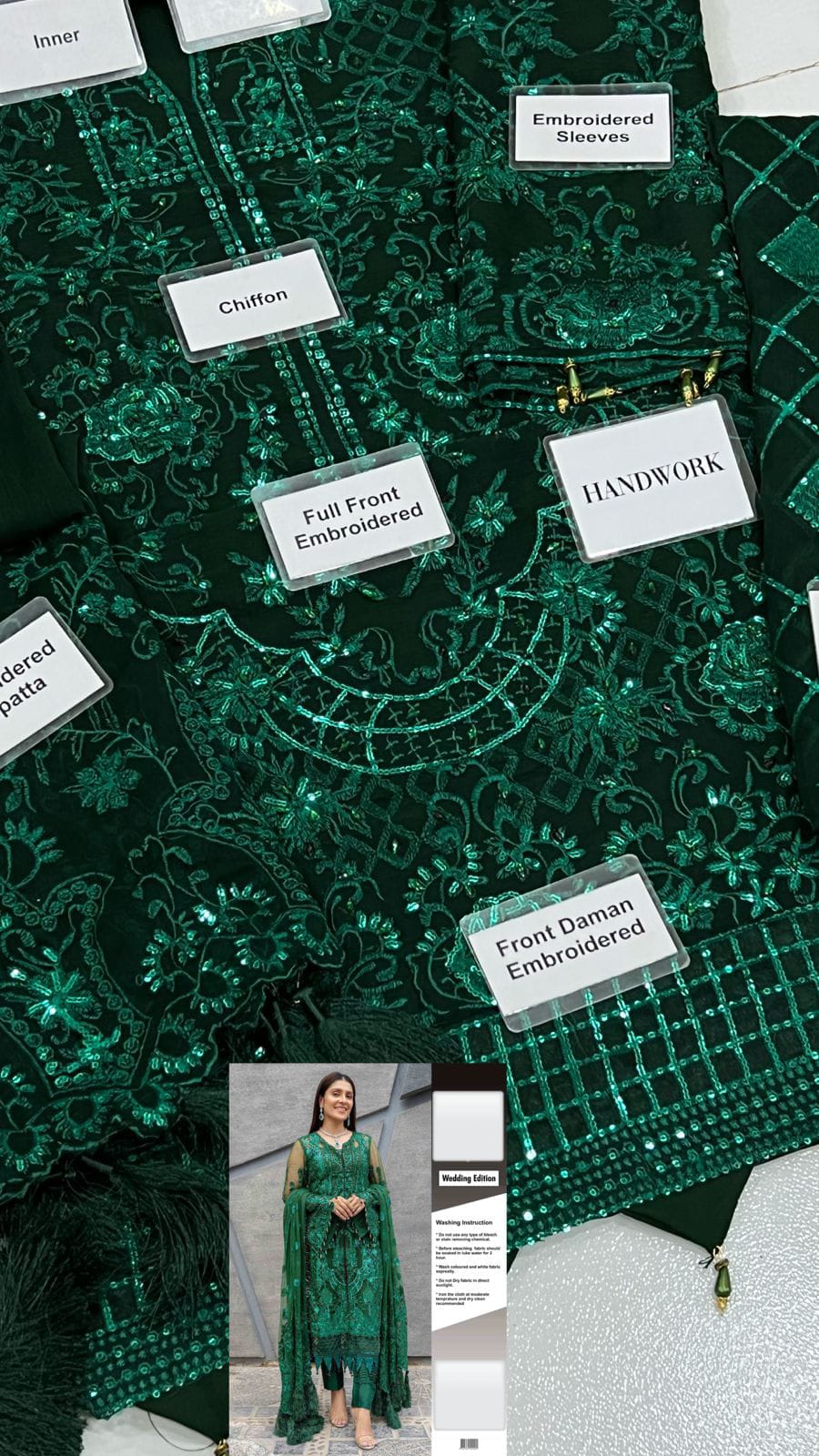 •Full Embroidered Sequence Work Chiffon Front With Handwork Stones