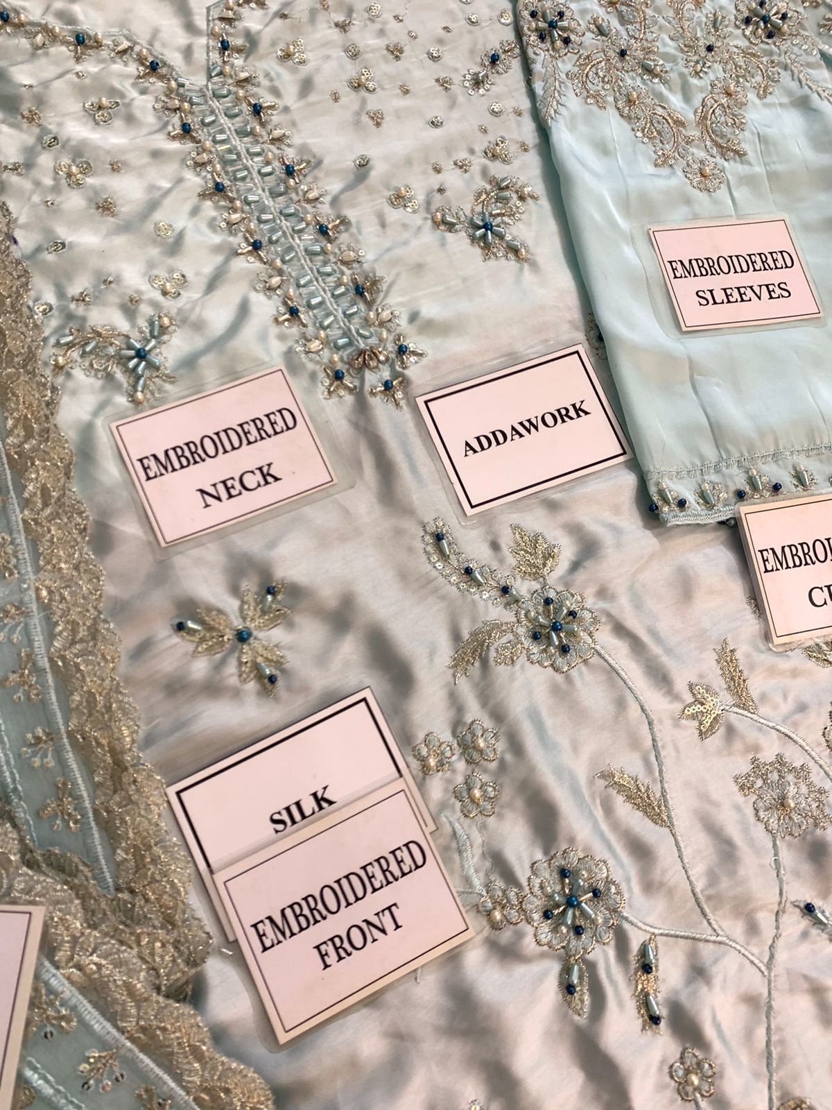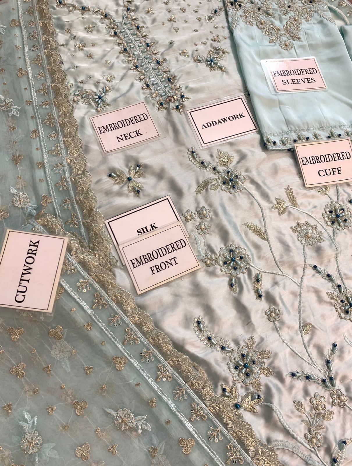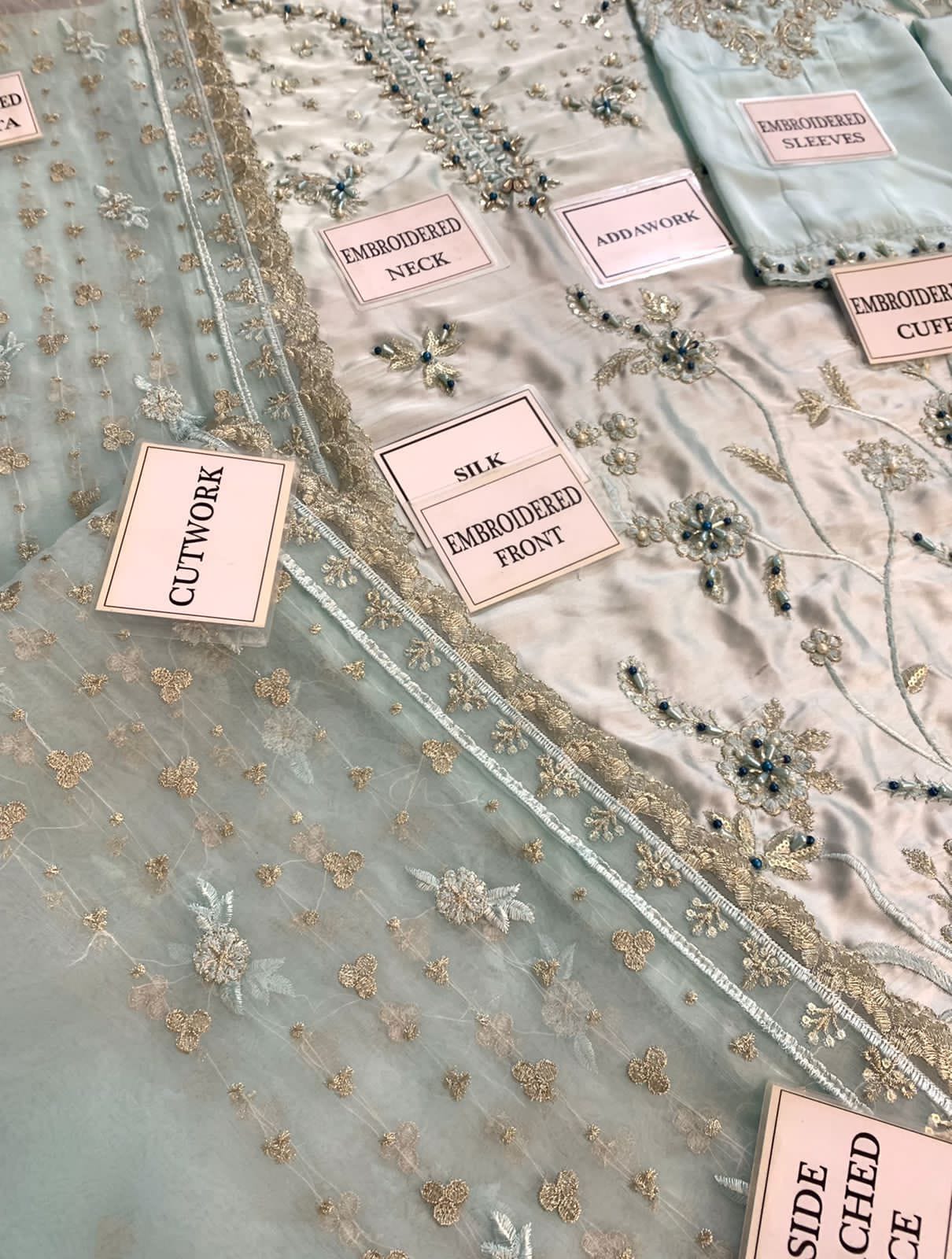 HEAVY EMBROIDERED SILK SLEEVES WITH HEAVY EMBROIDERED CUFF EMBELLISHED WITH ADDA WORK AND STONE WORK