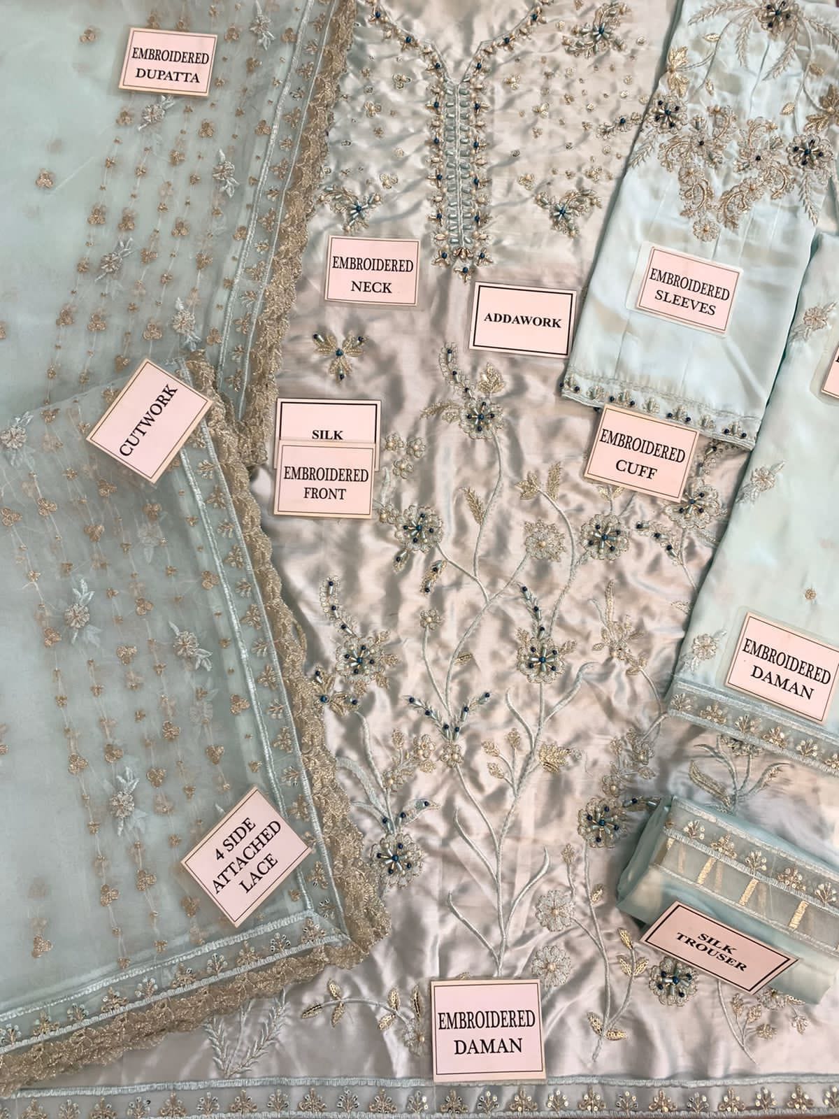 EMBROIDERED SILK BACK WITH EMBROIDERED DAMAN PATTI