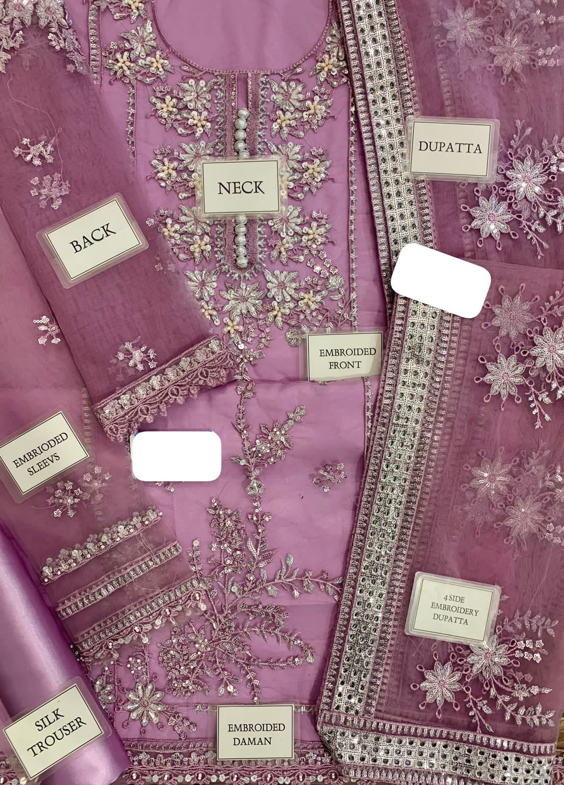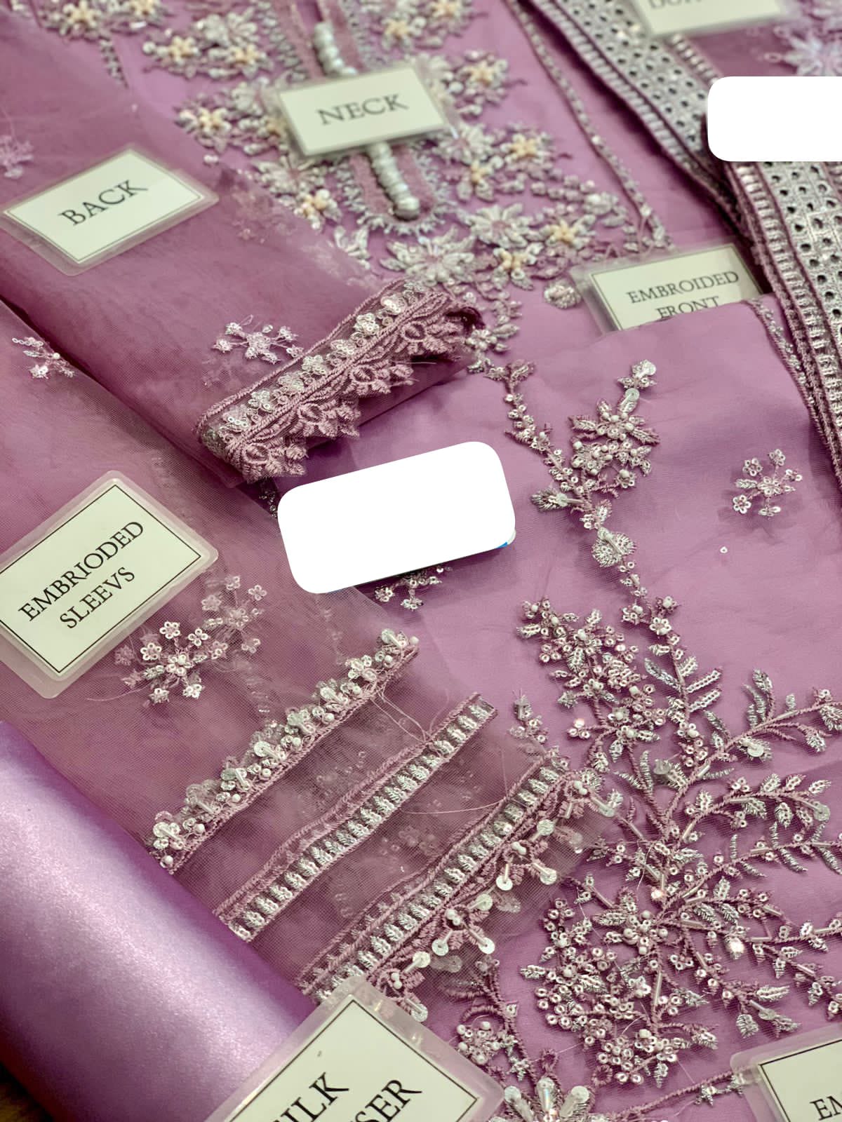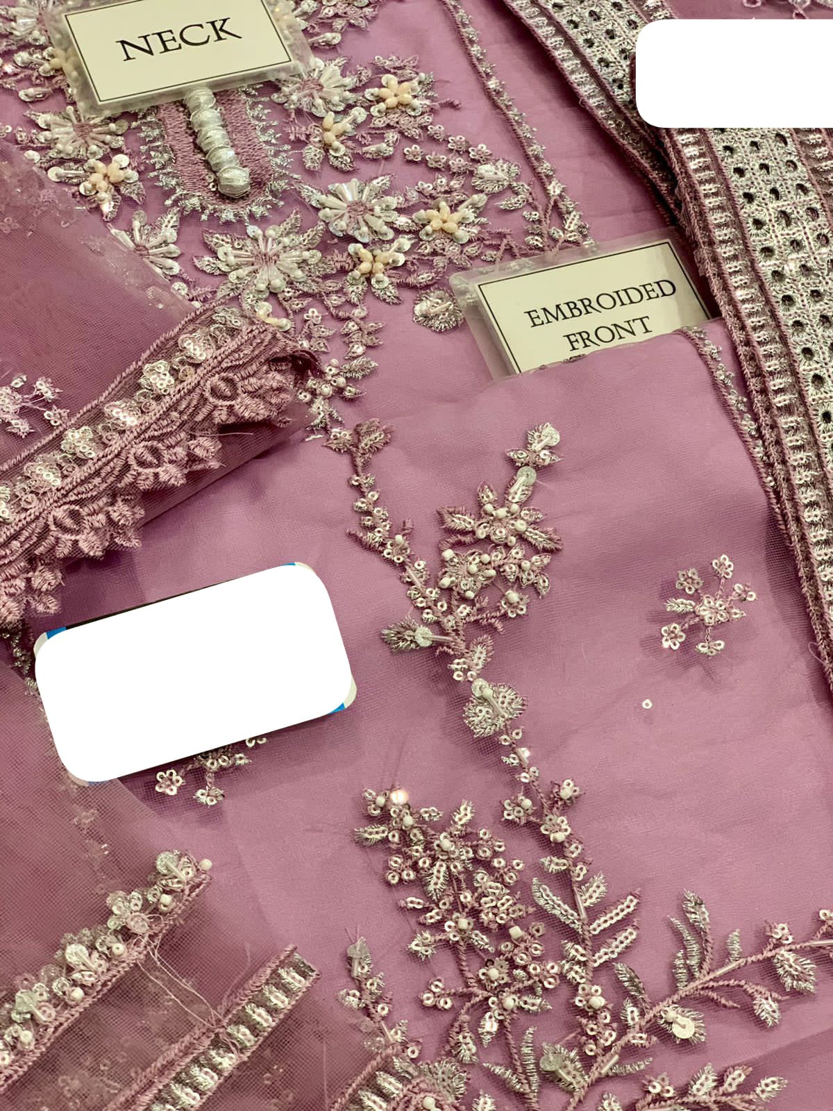 NET FULLY HEAVY EMBROIDERED SELEEVES EMBELISH WITH ADDA WORK ALONG WITH CUFF BORDER ON FABRIC