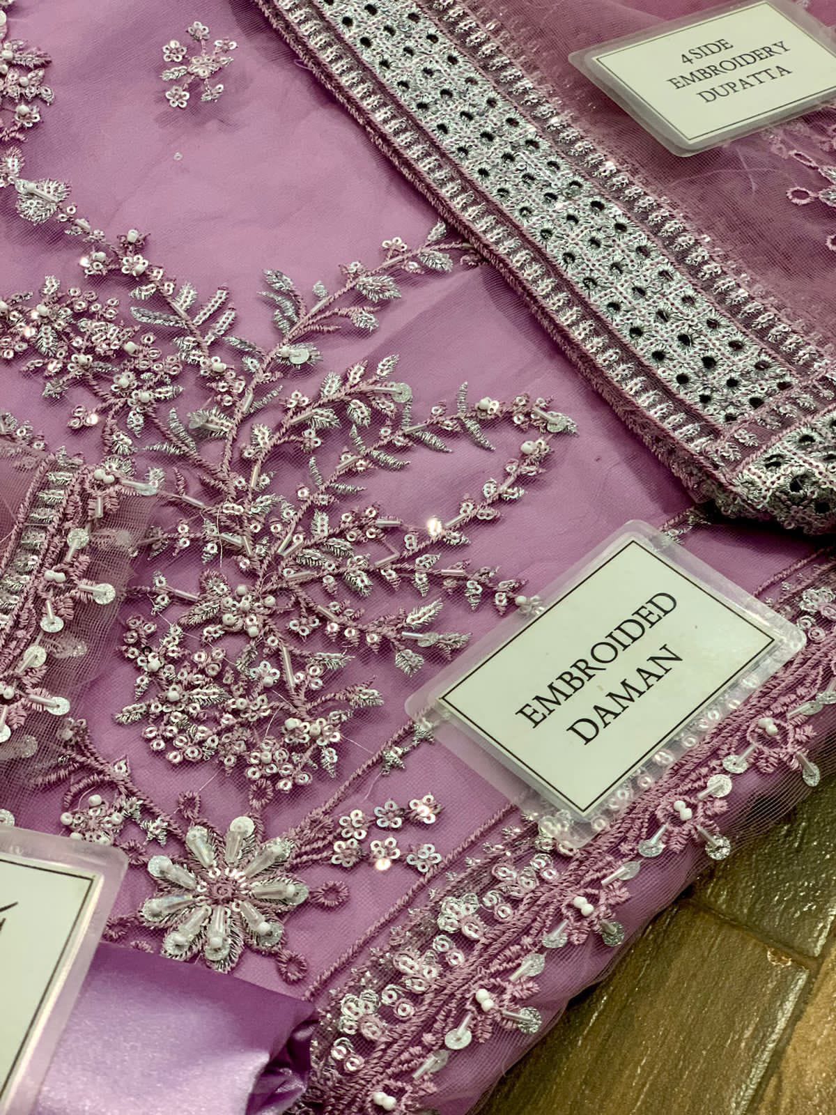NET FULLY HEAVY EMBROIDERED DUPATTA WITH 4SIDE SHIFFLI EMBROIDERED BORDERS ATTACHED ( READY TO WEAR )