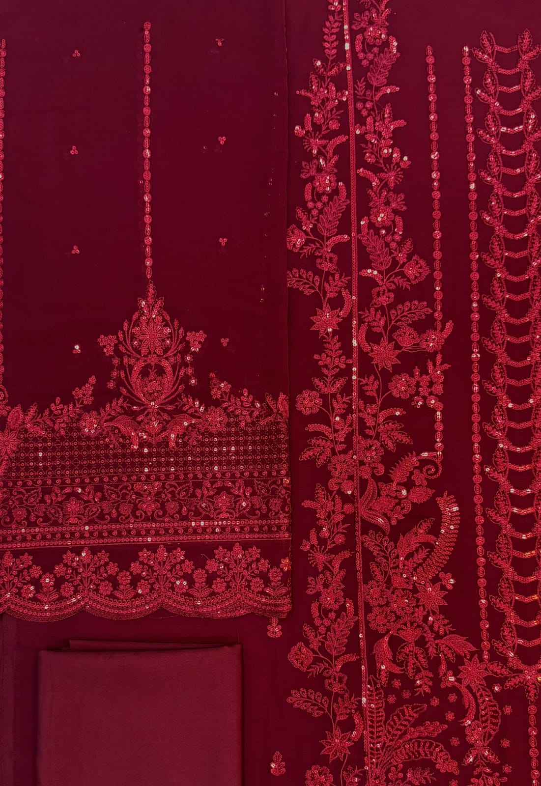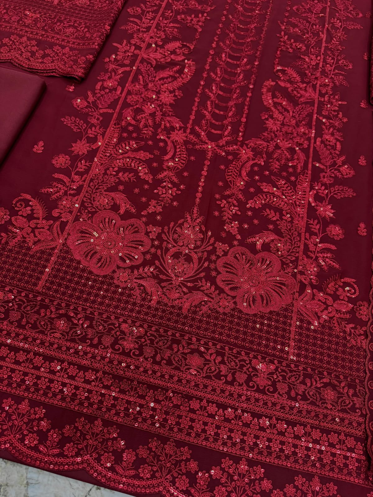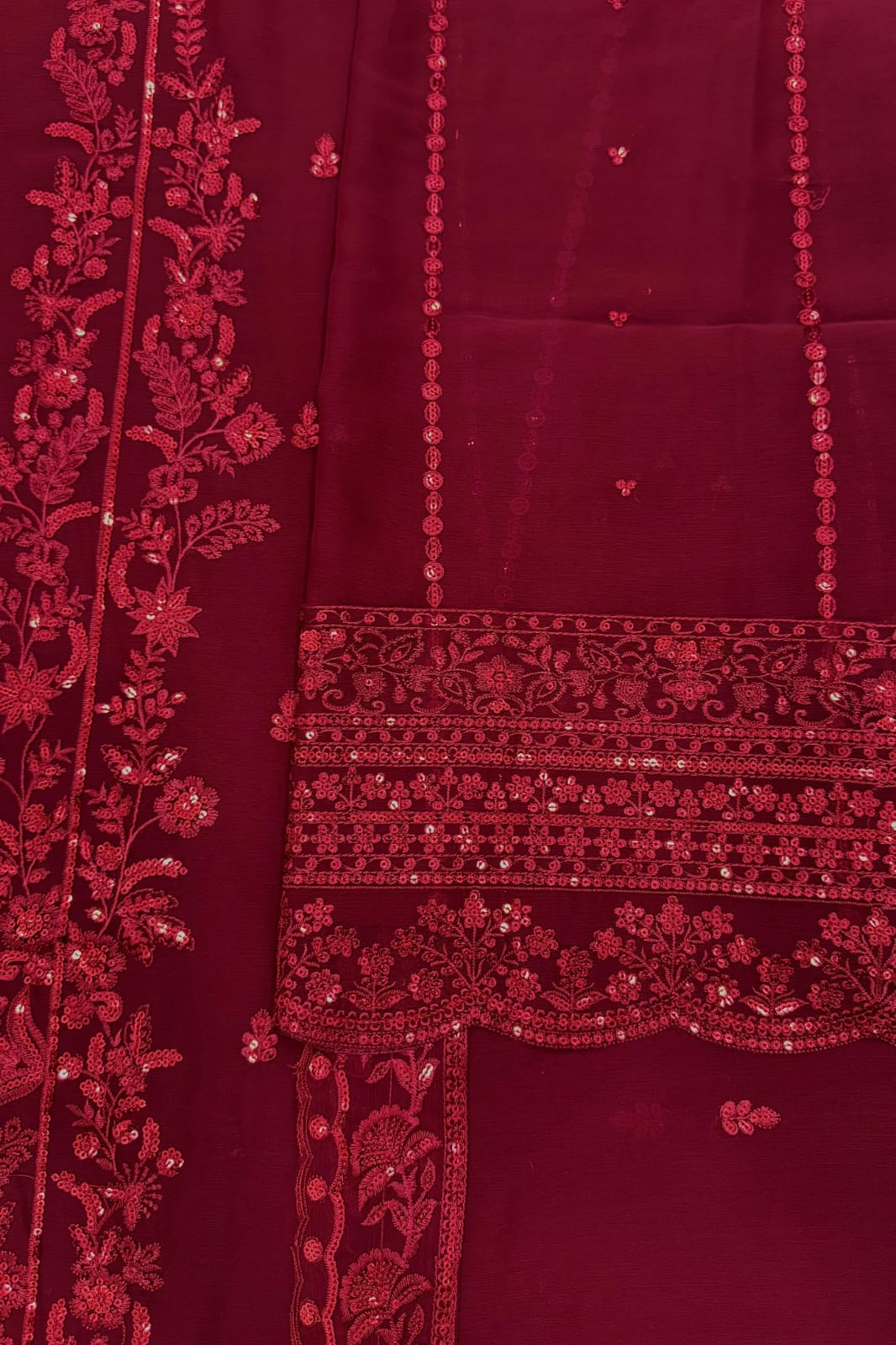 •Semi Pure Chiffon Sequence Embroidered Daman Border (Front & Back)