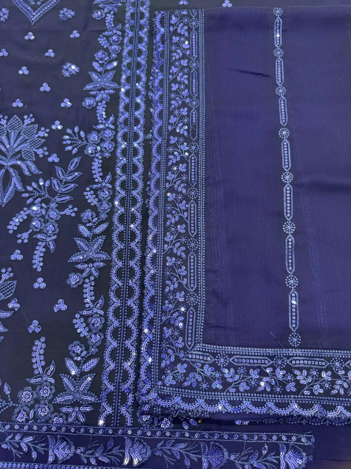 •Semi Pure Chiffon Sequence Embroidered Front