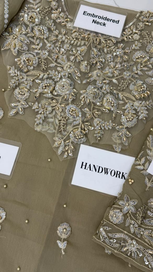 • Embroidered Sequence Work Addawork Chiffon Sleeves