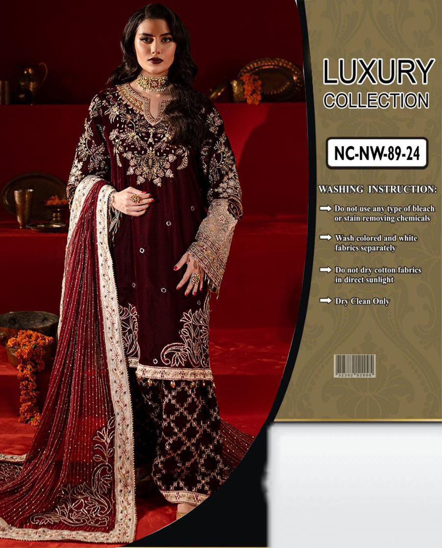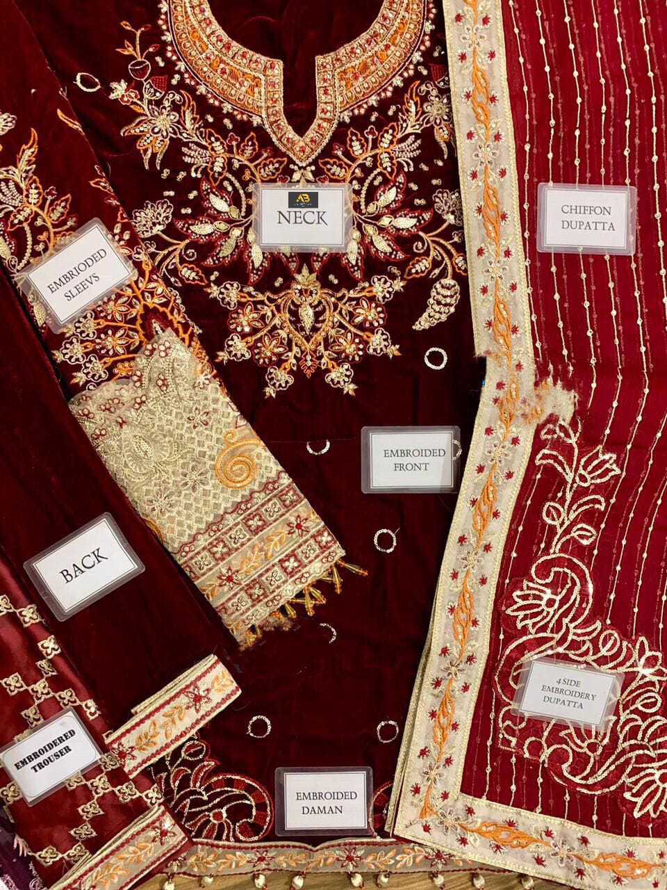 Velvet fully heavy alternet embroidered spengle work front with hand emblishment adha work with embroidered spengle work daman lace & chak lace & fancy zari tulses attach