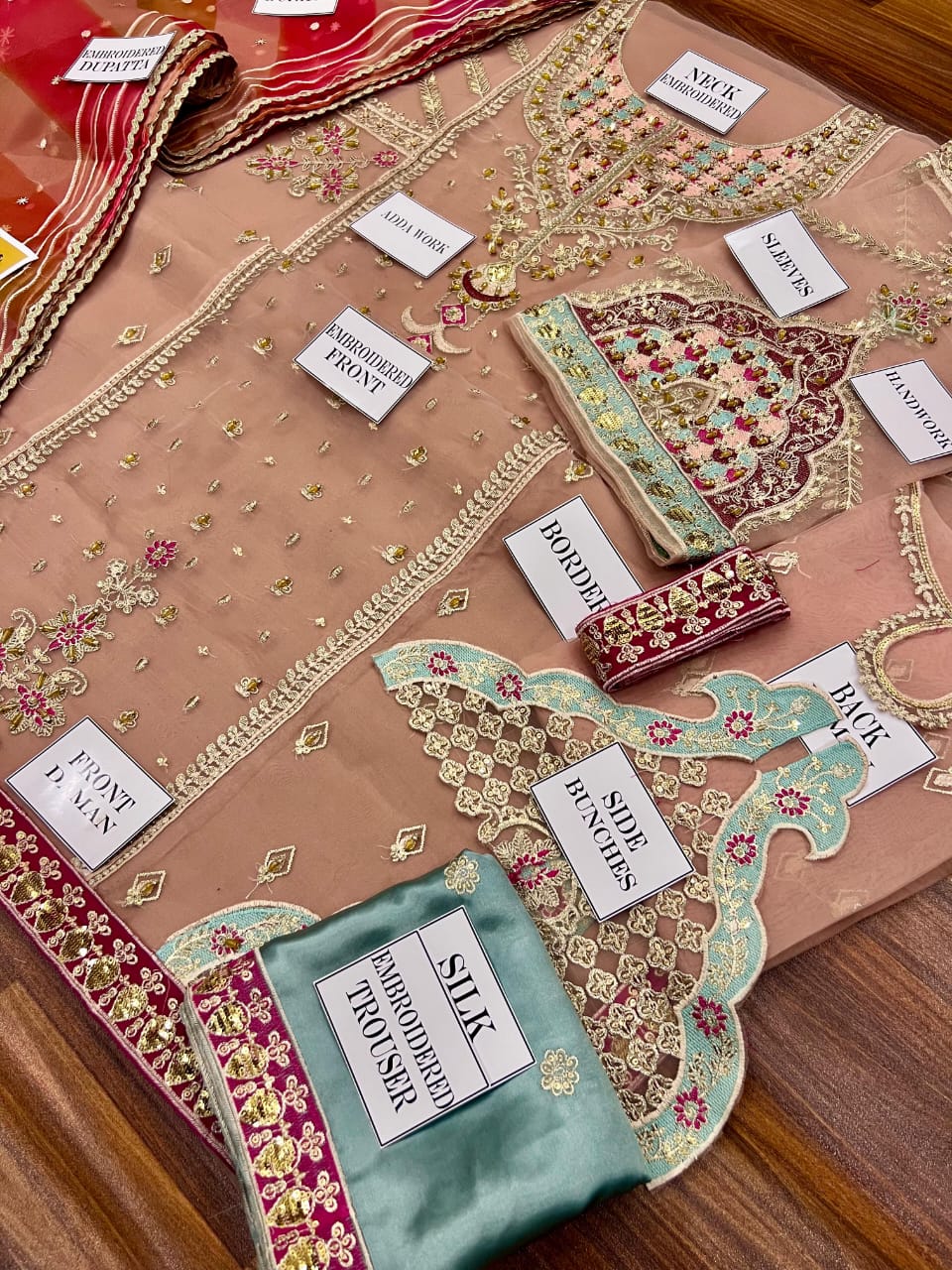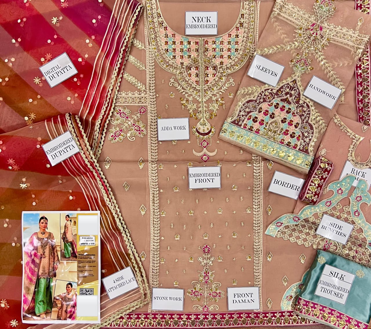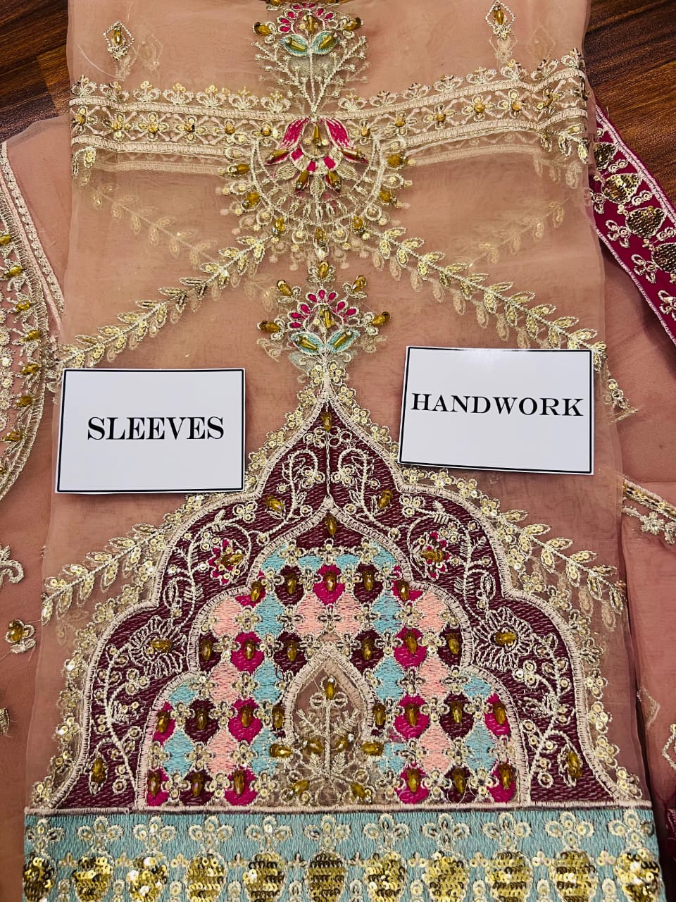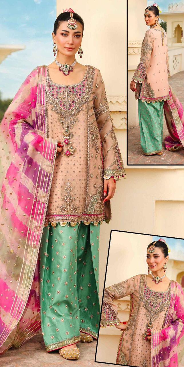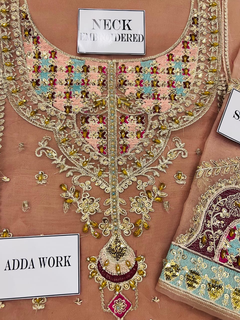 •Neck Heavy Sequence Embroidered Motif on Fabric with Heavy Adda🤚work