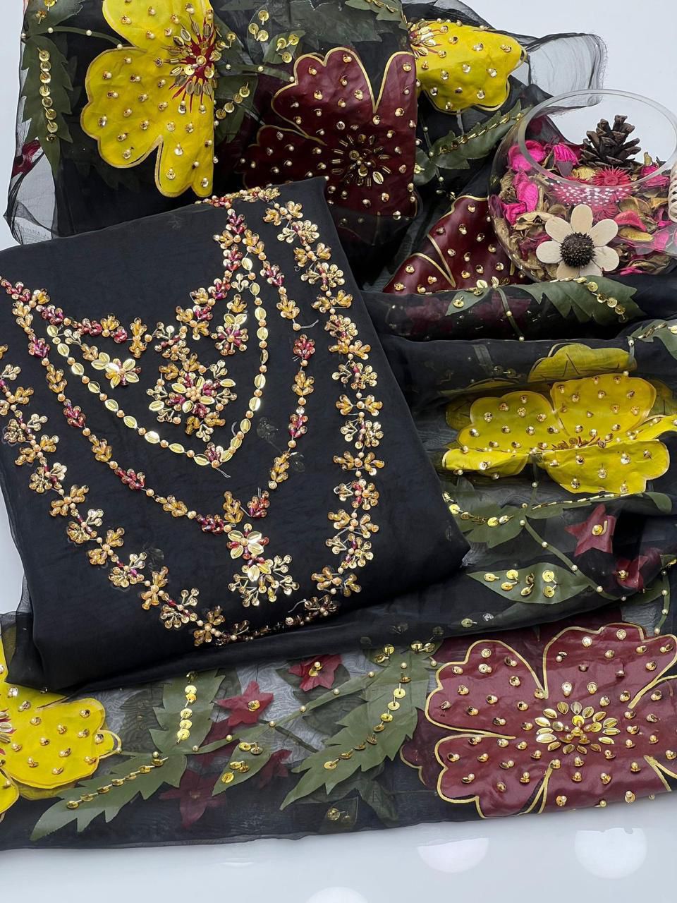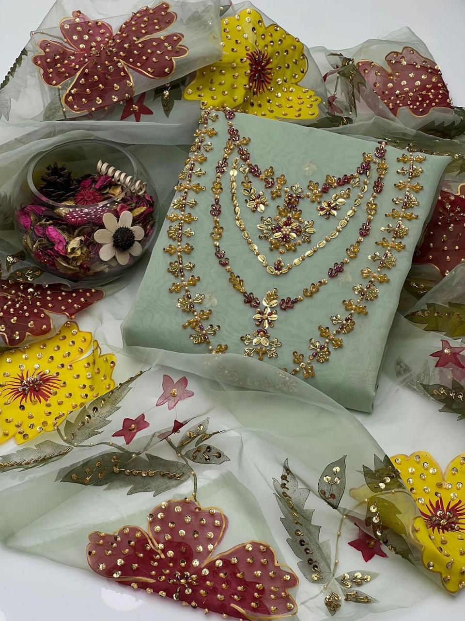 *ORGANZA HANDMADE HAND EMBELLISHED LUXURY FANCY UNSTITCHED 2pc*