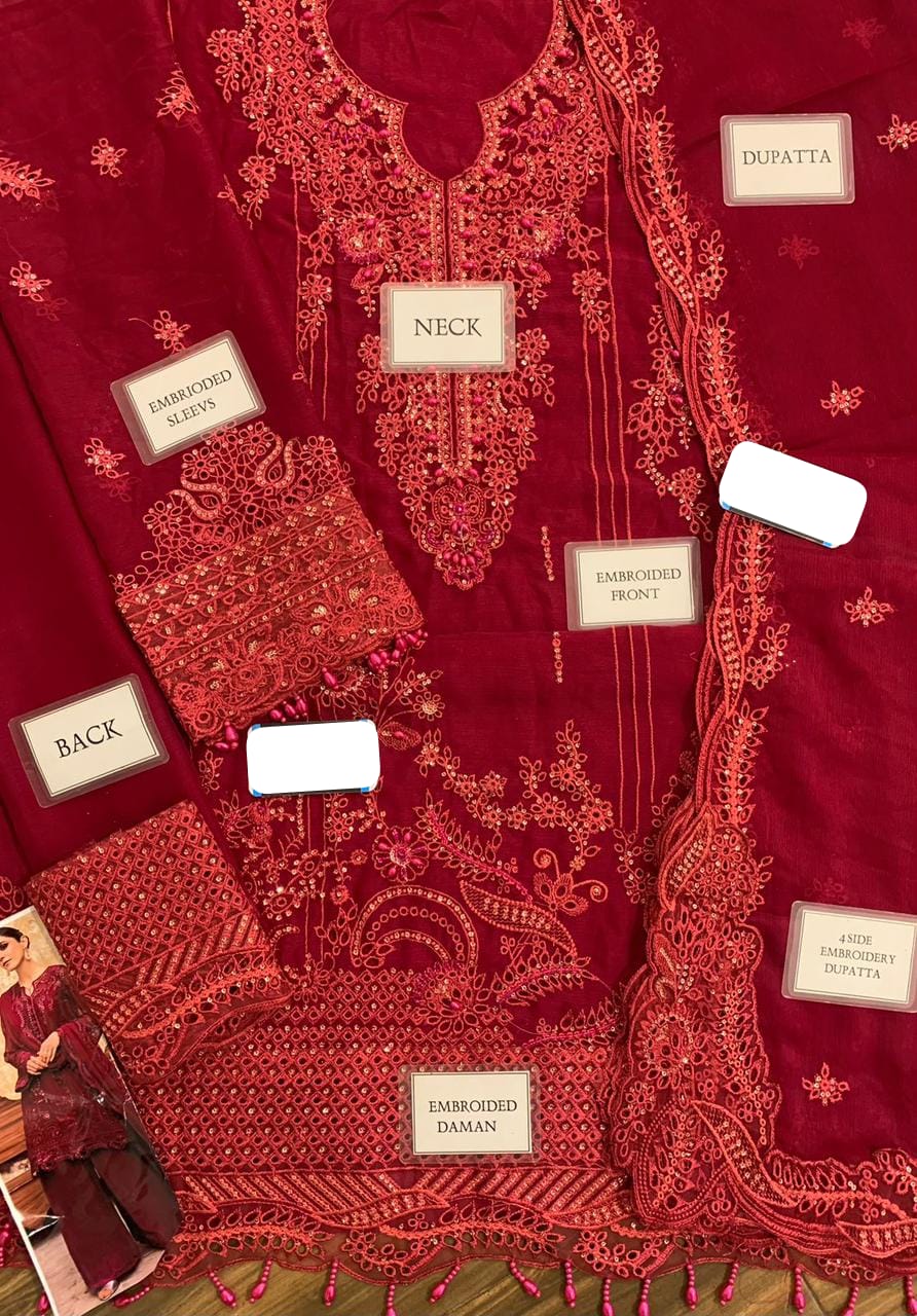 chiffon fully heavy alternet embroidered spengle work front with fully hand emblishment adha work with heavy embroidered scifflie & spengle daman boarder with fancy tulses attach