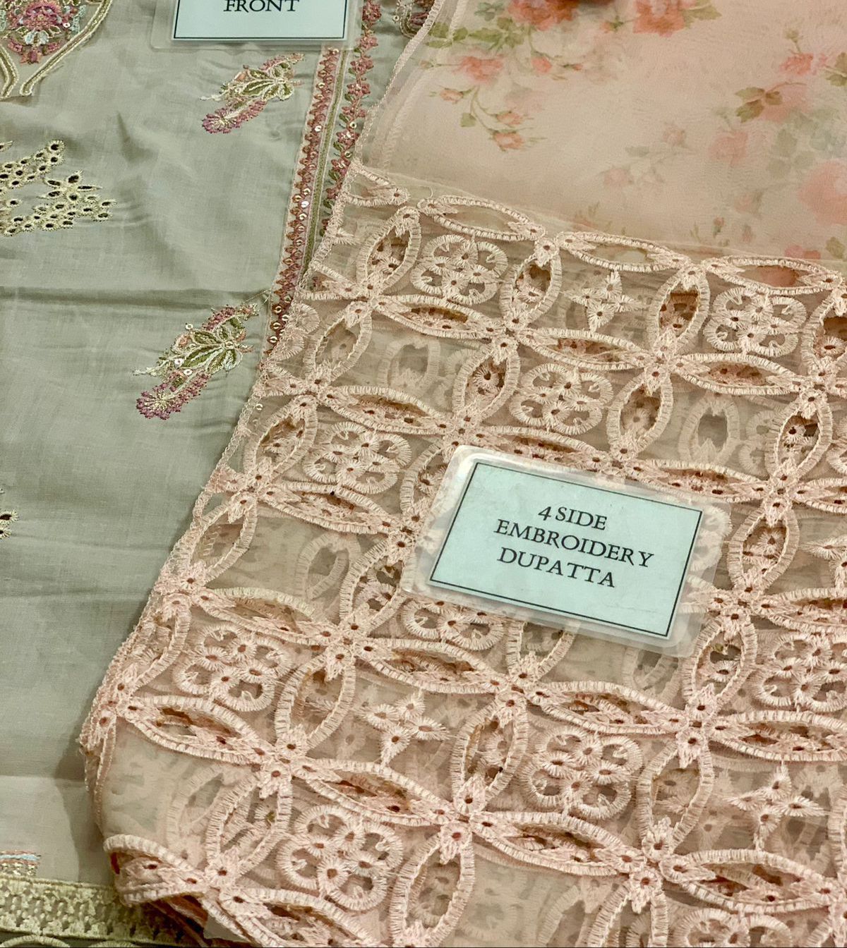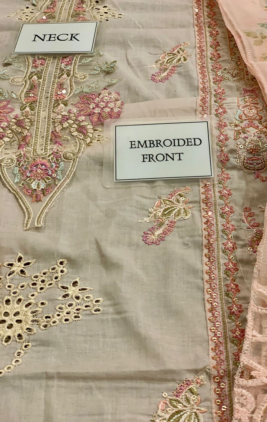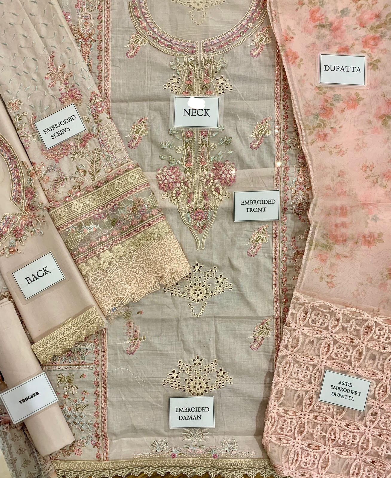 *plain lawn back with heavy embroidered spengle work back bunch with heavy embroidered back daman lace*