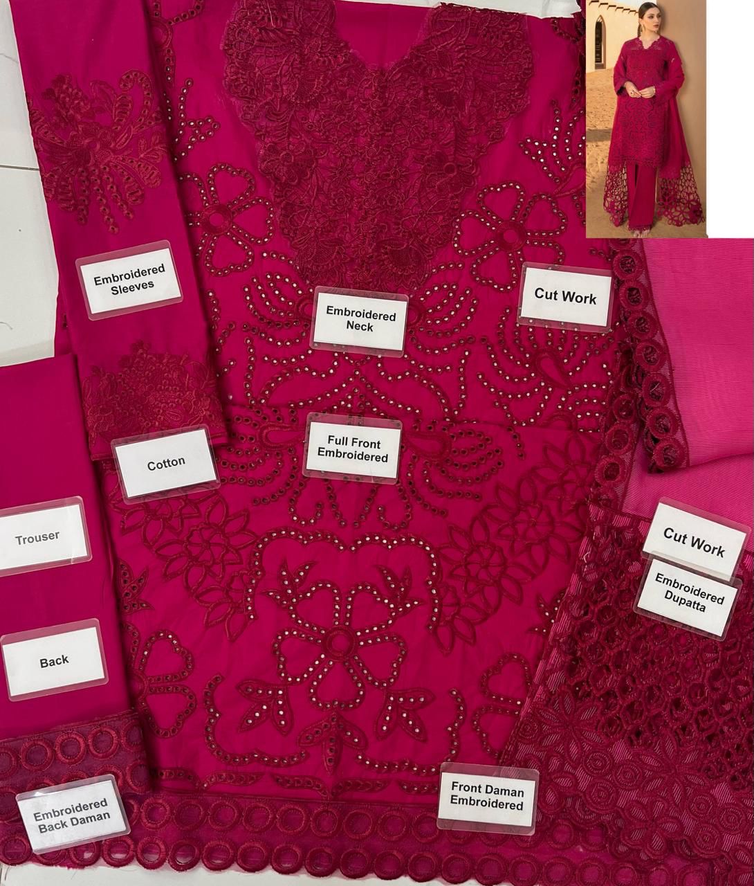 •Heavy Embroidered Cotton Chikankari Front