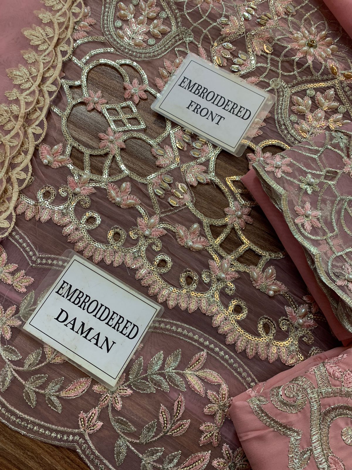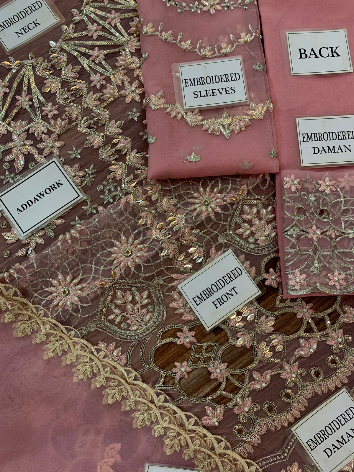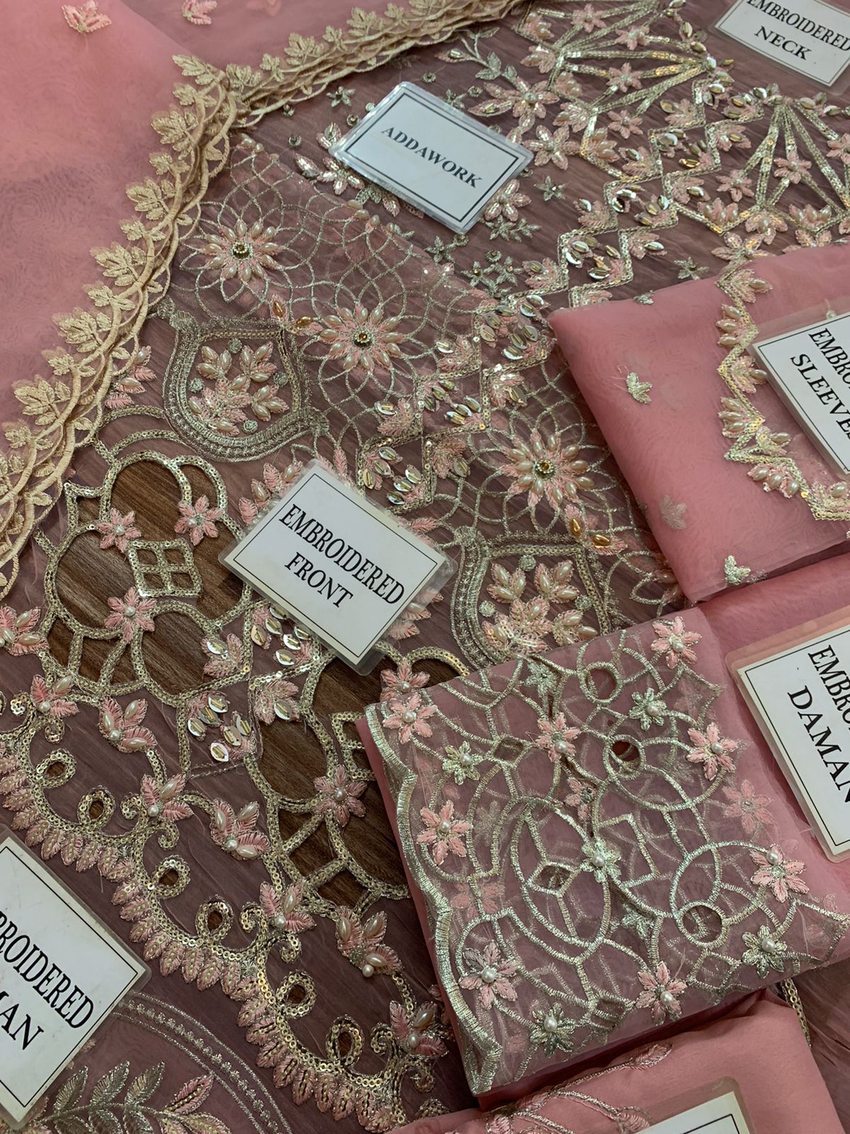 HEAVY EMBROIDERED AND CUTWORK ORGANZA FRONT EMBELLISHED WITH ADDA WORK WITH HEAVY EMBROIDERED CUTWORK DAMAN PATCH