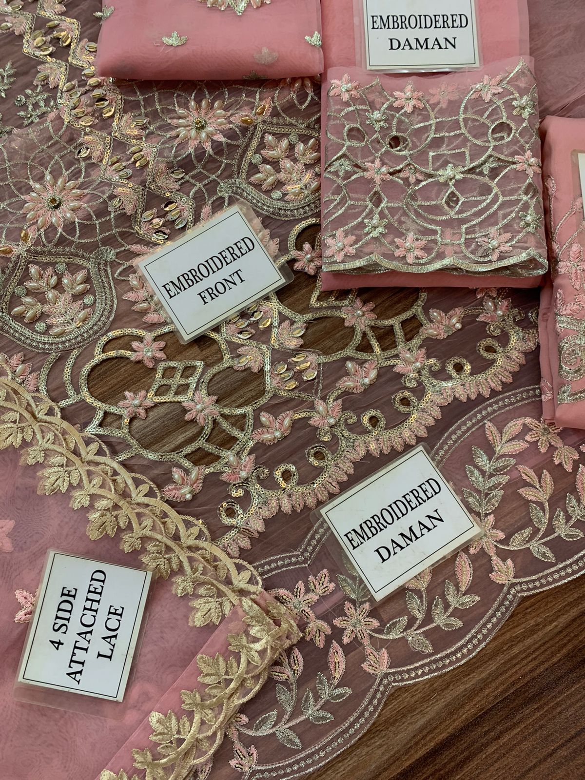 HEAVY EMBROIDERED ORGANZA DUPATTA ALONG WITH EMBROIDERED 4SIDE ATTACHED LACE