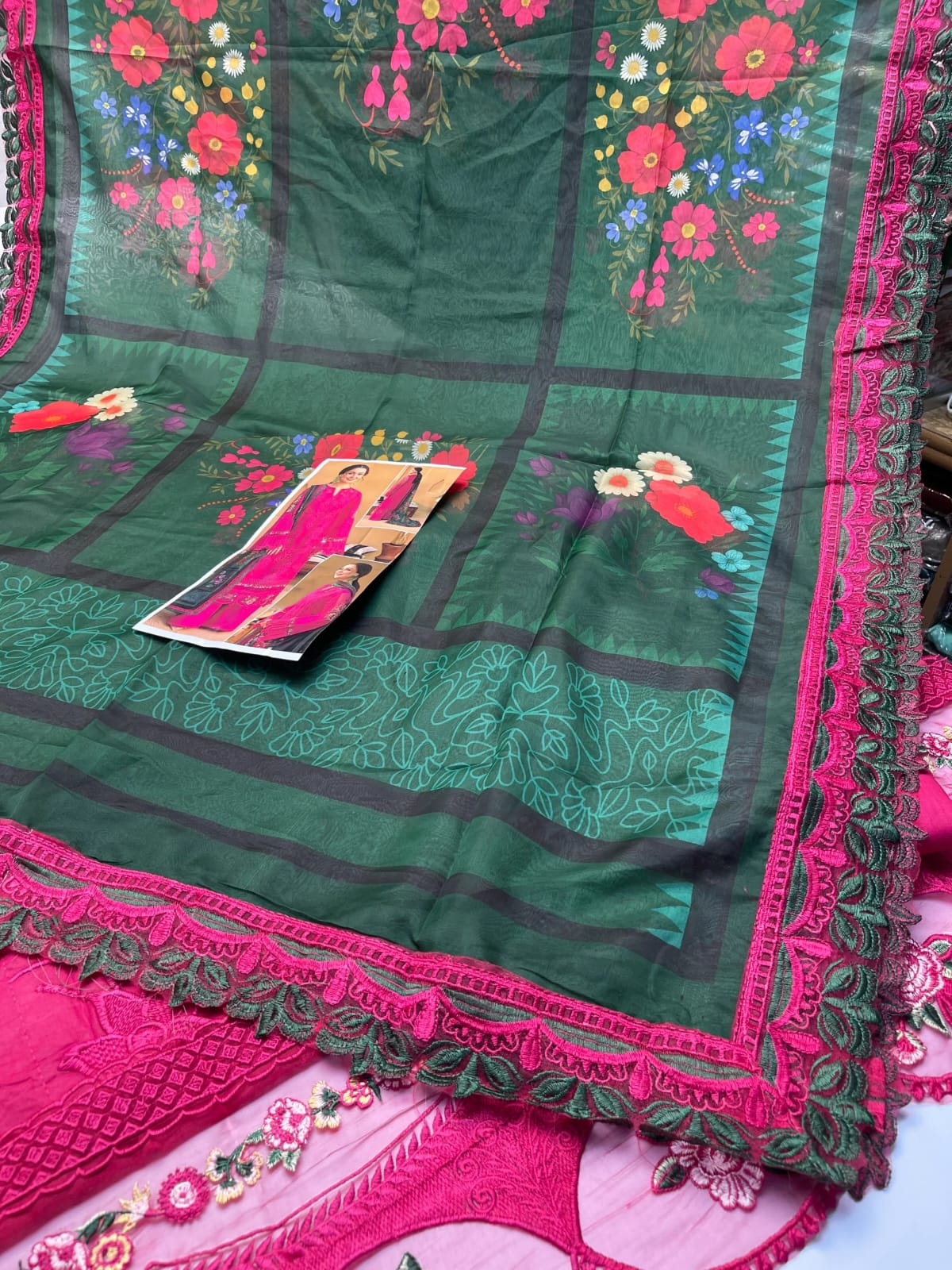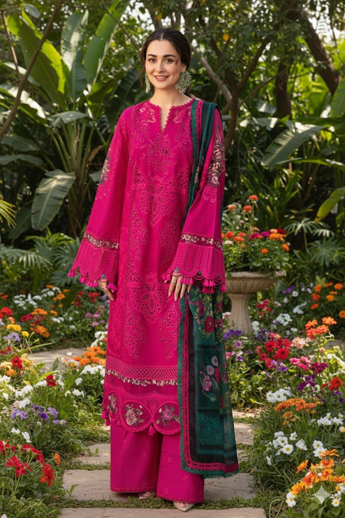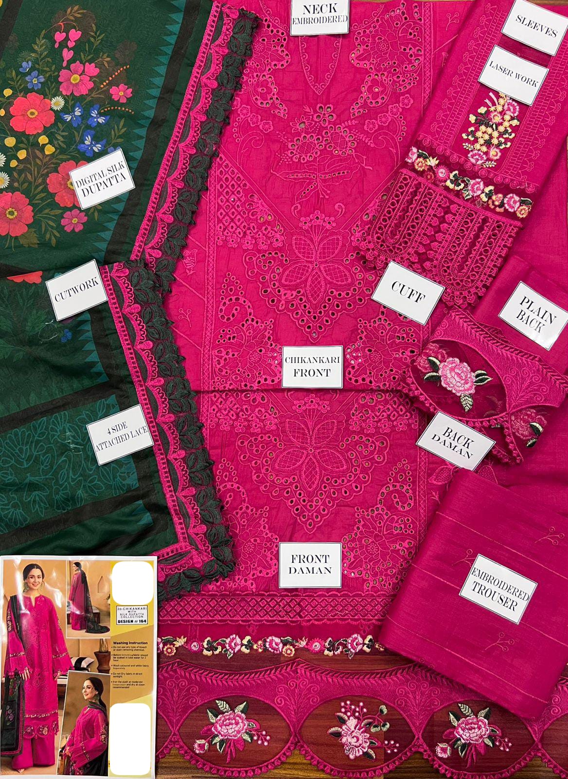 •Front fully heavy Schiffli Embroidered MULTI-THREAD work(SAME AS ORIGINAL)
