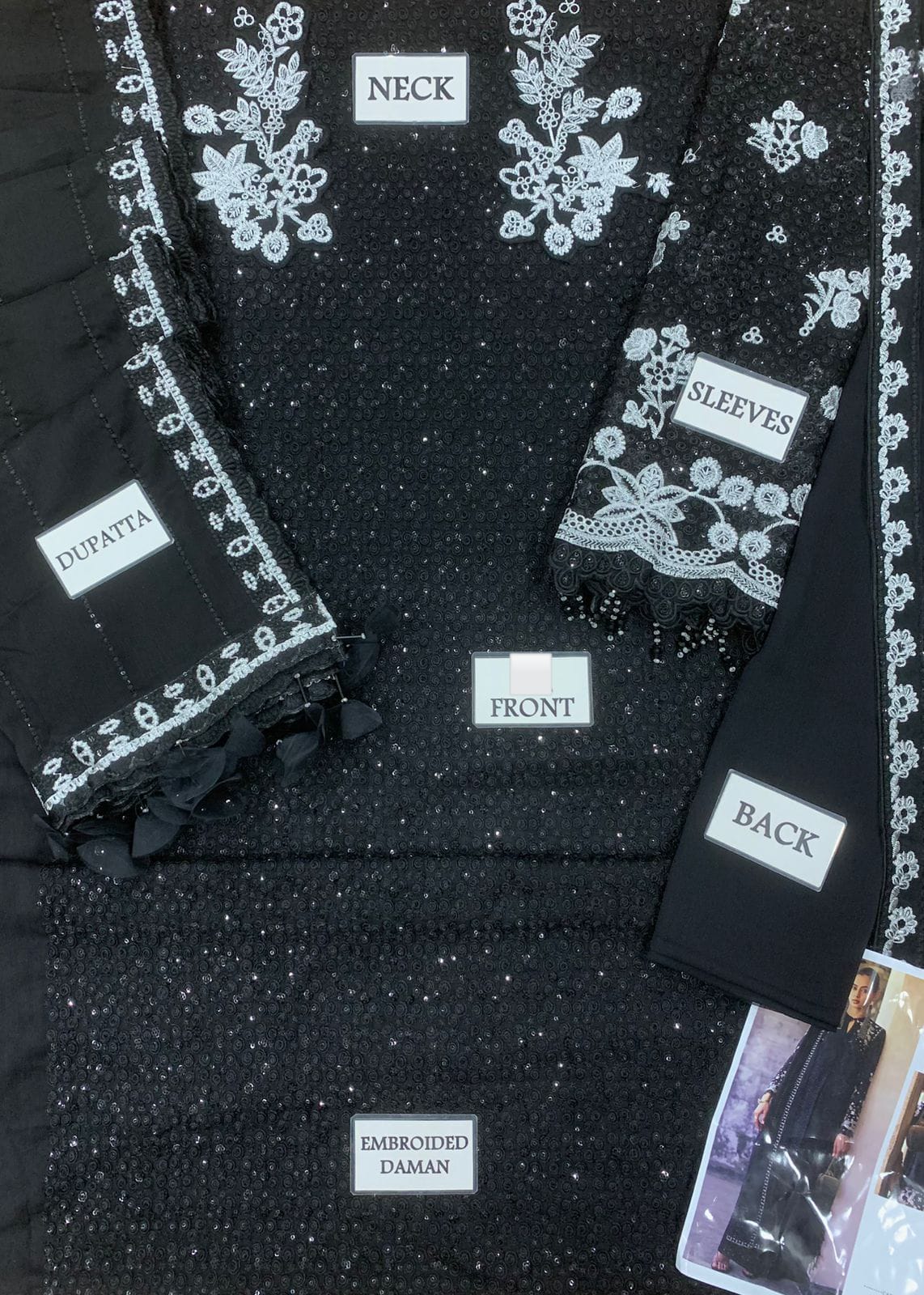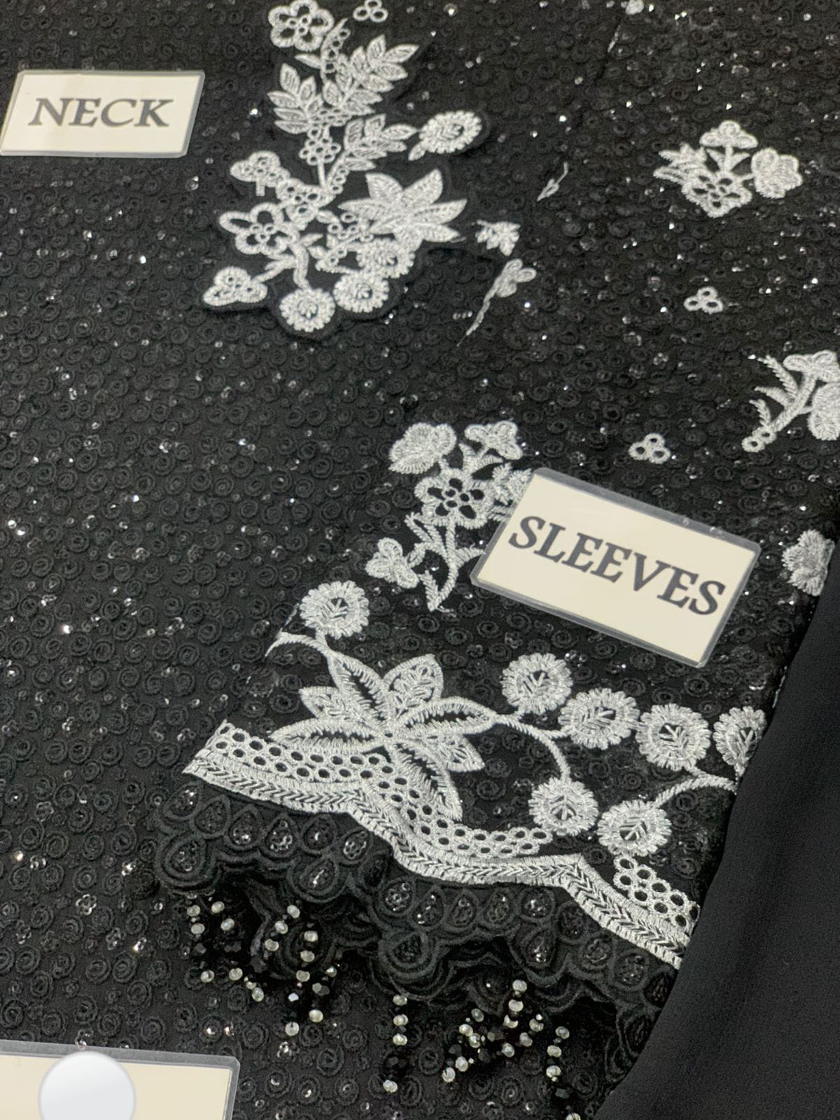 chiffon fully heavy embroidered spengle work with complete sequence work with heavy embroidered spengle work neckline with heavy embroidered chawl lace feet length