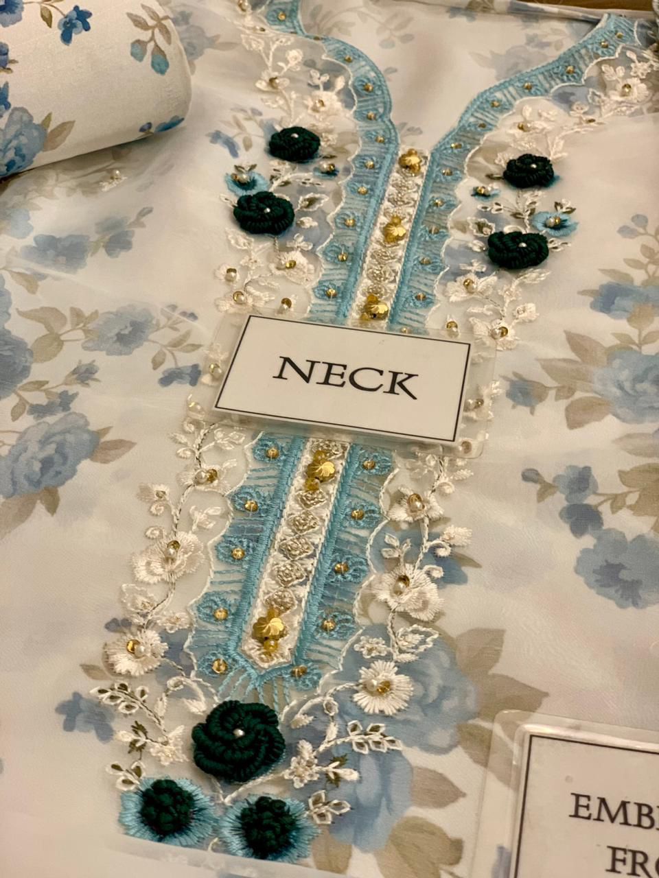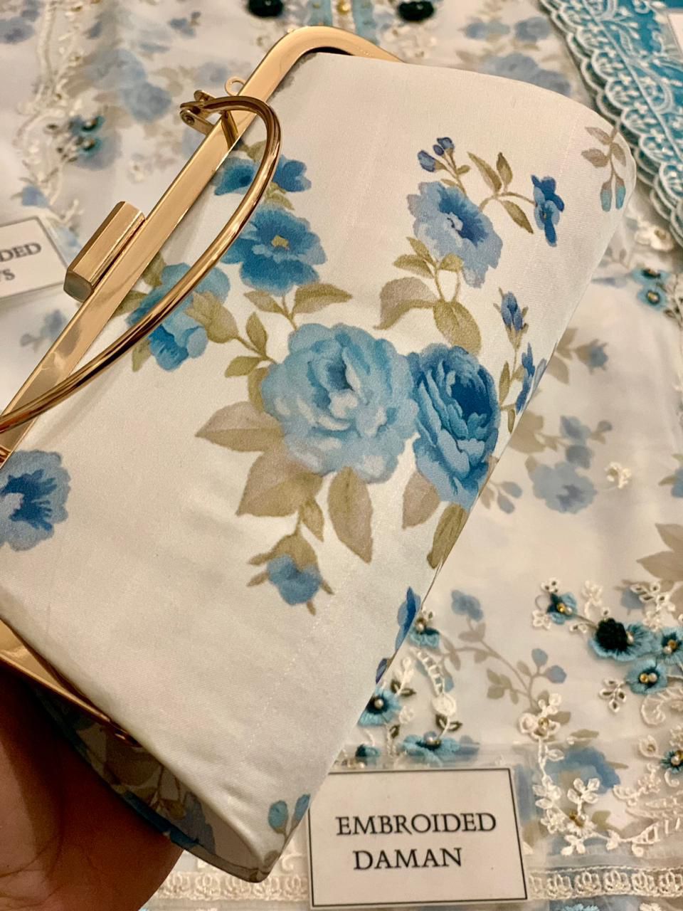 CHIFFON EMBROIDERED SEQUENCE FRONT EMBELISH WITH HANDWORK AND HANGING TUSSLES ON DAMAN