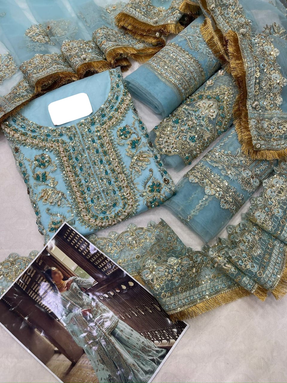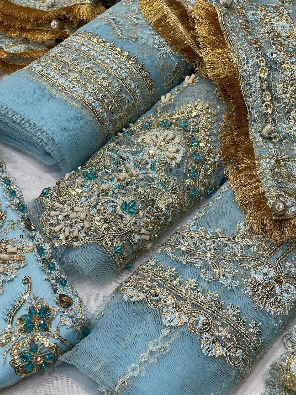 -NET HEAVILY EMBROIDED FRONT WITH ALL HANDWORK WITH HEAVY EMBROIDED DAMAN PATCH ALONG WITH HANDWORK (SAME AS ORIGINAL)
