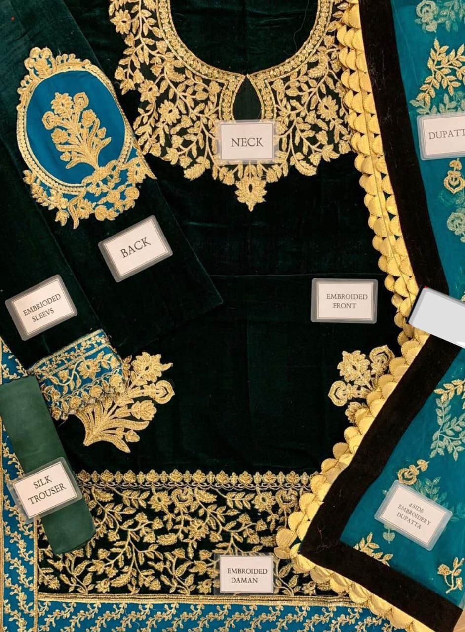 velvet fully heavy embroidered spengle work front with heavy embroidered spengle work daman lace & chak lace with heavy embroidered spengle work neck & daman bunches